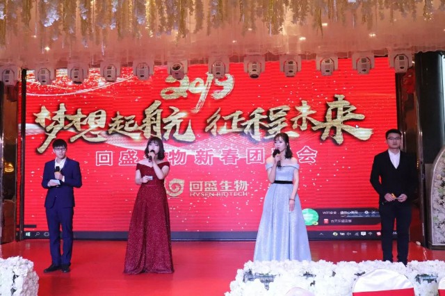 2018年以“夢想起航 征程未來”為主題的回盛生物新春團拜會在大自然皇家宴酒店舉行。員工自發(fā)編排的舞蹈、小品、相聲等節(jié)目贏得員工們的陣陣掌聲,現(xiàn)場氣氛活躍,笑聲不斷,精彩紛呈。