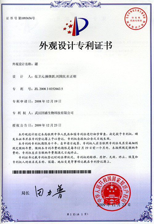 外觀設計專利證書(罐專利)